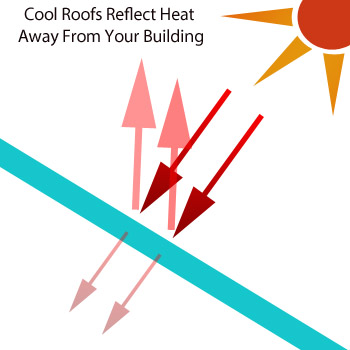 Cool roofing is a roof that reflects sunlight and heat away from the building on which it is installed. The roof itself stays cooler and keeps the heat from radiating into the structure. Air conditioning equipment does not have to work as hard, and has the potential to significantly impact your electric bills.