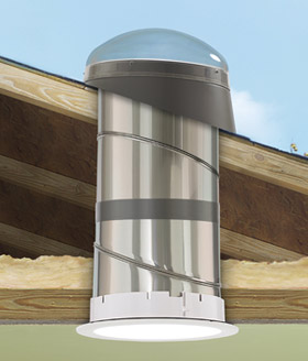 The TMR SUN TUNNEL skylight features an innovative one-piece pitched metal flashing that is designed to keep out the elements while providing the optimal angle for gathering light from all directions. - Ceiling frame